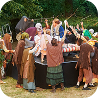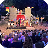 Openluchttheater in hartje Ravenstein is een ervaring als geen ander. Terwijl de zon langzaam ondergaat en de sterren aan de hemel verschijnen, vervagen de grenzen tussen publiek en spel. De natuur en de karakteristieke eigenschappen van ons prachtige stadje worden een deel van het decor. De echo van een stem klinkt extra bijzonder in de buitenlucht van de kasteeltuin of tussen de eeuwenoude vestingmuren.